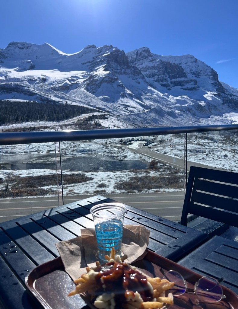 - Lunch @ Chalet: We were craving another poutine and tried the one at Chalet. The fries were good and tasted like Costco fries! We sat at the balcony area (it was super cold) and saw the view of the glacier behind us. It was breathtaking.